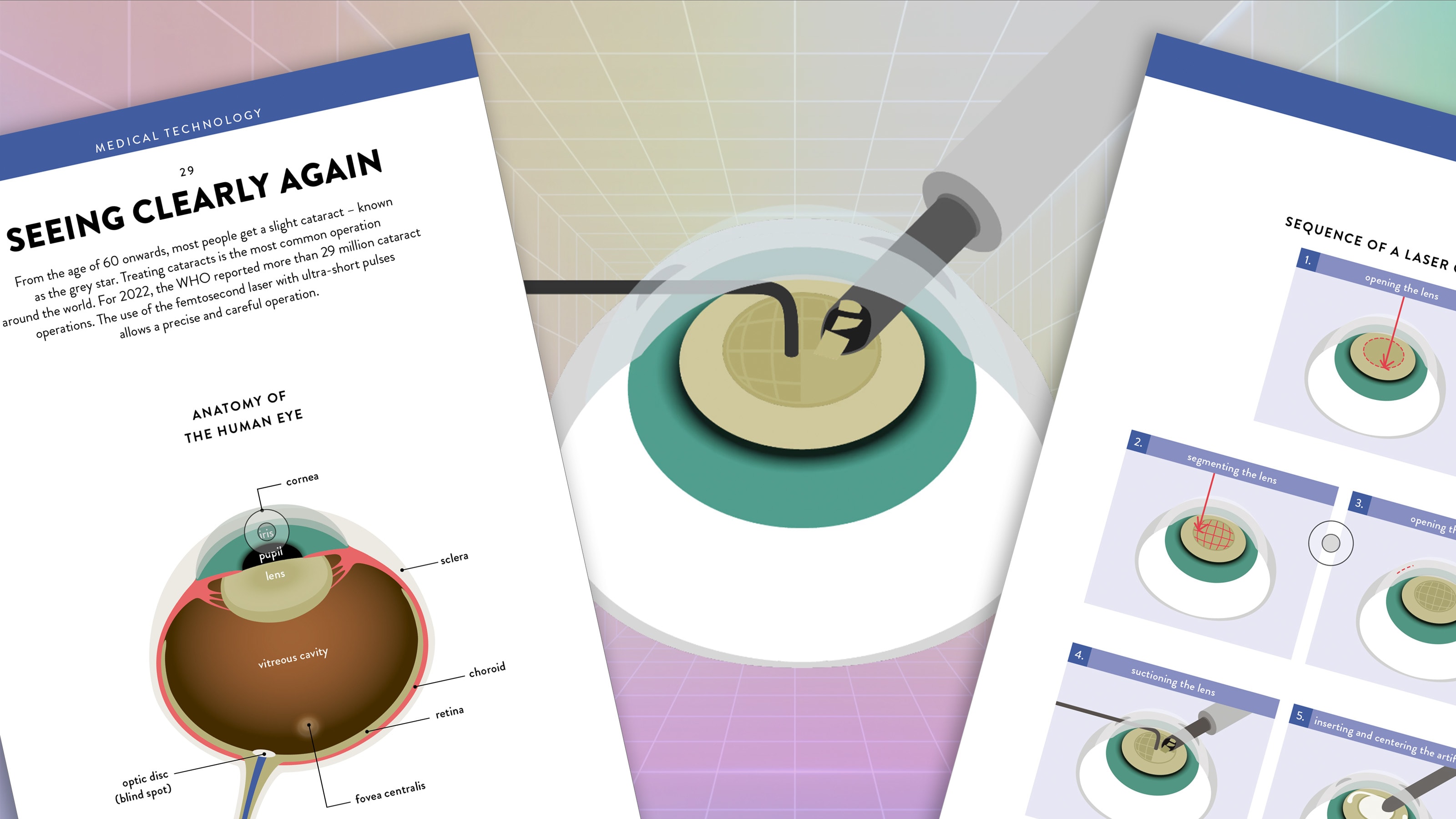 From the age of 60 onwards, most people get a slight cataract – known as the grey star. Treating cataracts is the most common operation around the world. For 2022, the WHO reported more than 29 million cataract operations. The use of the femtosecond laser with ultra-short pulses allows a precise and careful operation.